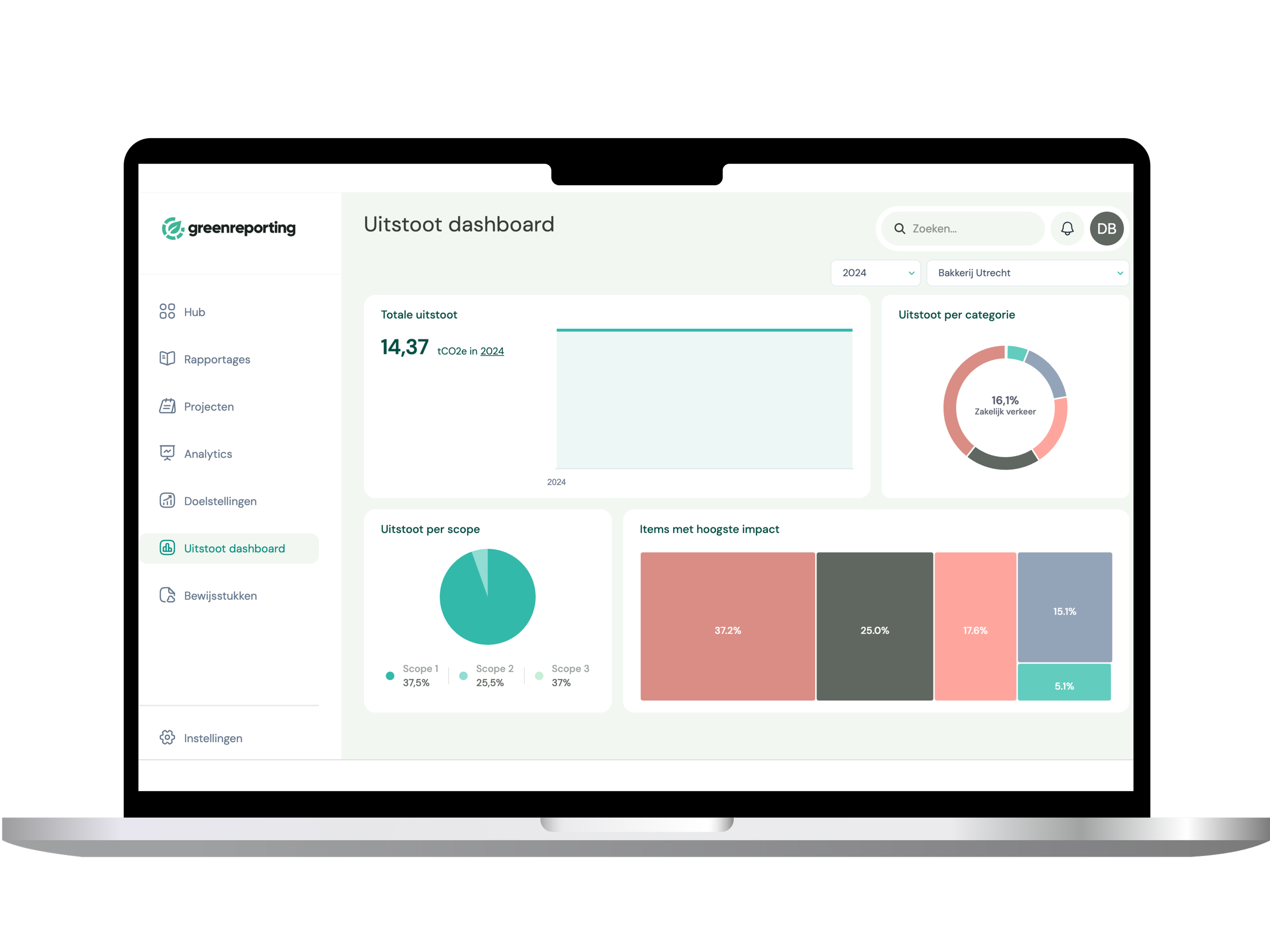 Zie per scope, thema en locatie waar je uitstoot vandaan komt. Filter op periode, module of locatie en ontdek snel je grootste verbeterkansen.