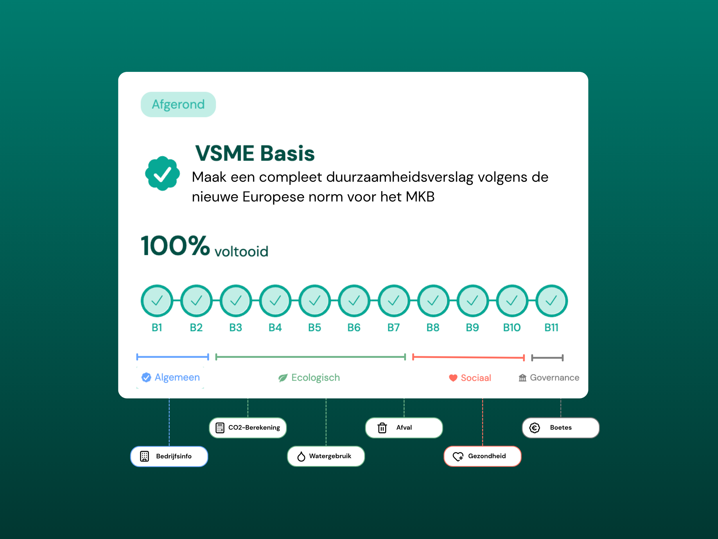 Na afronden ontvang je een professioneel rapport, volledig volgens de VSME-structuur.